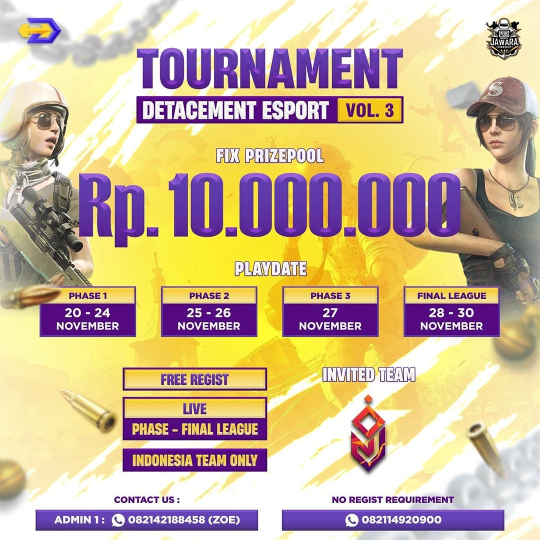 Turnamen Detachment ESPORT VOL.3 hadir dengan hadiah tetap 10 juta rupiah, menjanjikan pertunjukan eSports seru. Berikut adalah ringkasan singkat acara ini: